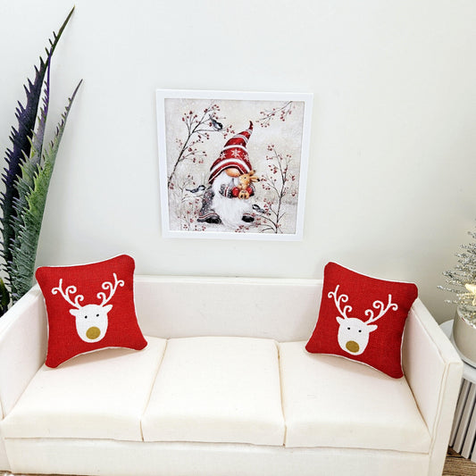 Dolls House Modern Framed Wall Art, Christmas Gonk print, 12th scale, miniature wall picture for any room