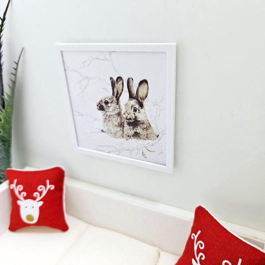 Dolls House Modern Framed Wall Art, Winter Rabbit Scene print, 12th scale, miniature wall picture for any room