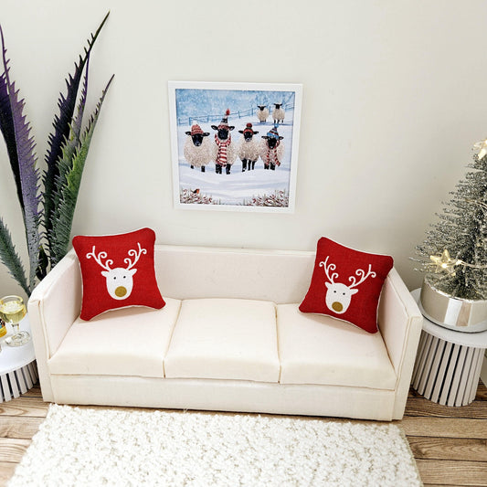 Dolls House Modern Framed Wall Art, Christmas Sheep print, 12th scale, miniature wall picture for any room