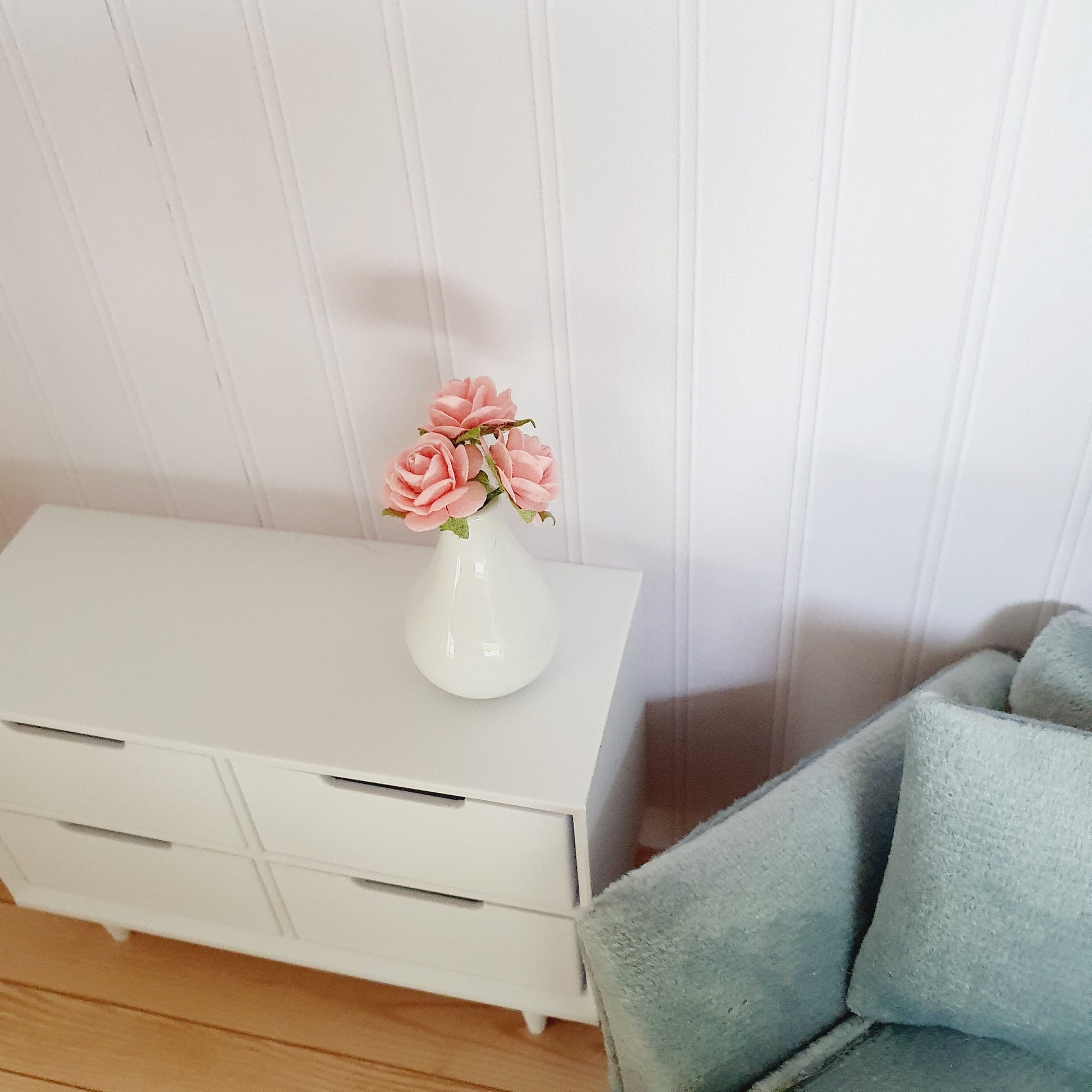 Bring delicate charm to your miniature scene with this beautiful arrangement of pink roses displayed in a classic white vase. Scaled perfectly for 1:12 dollhouses, this handcrafted floral accent is ideal for styling dining tables, sideboards, windowsills, or bedside tables.