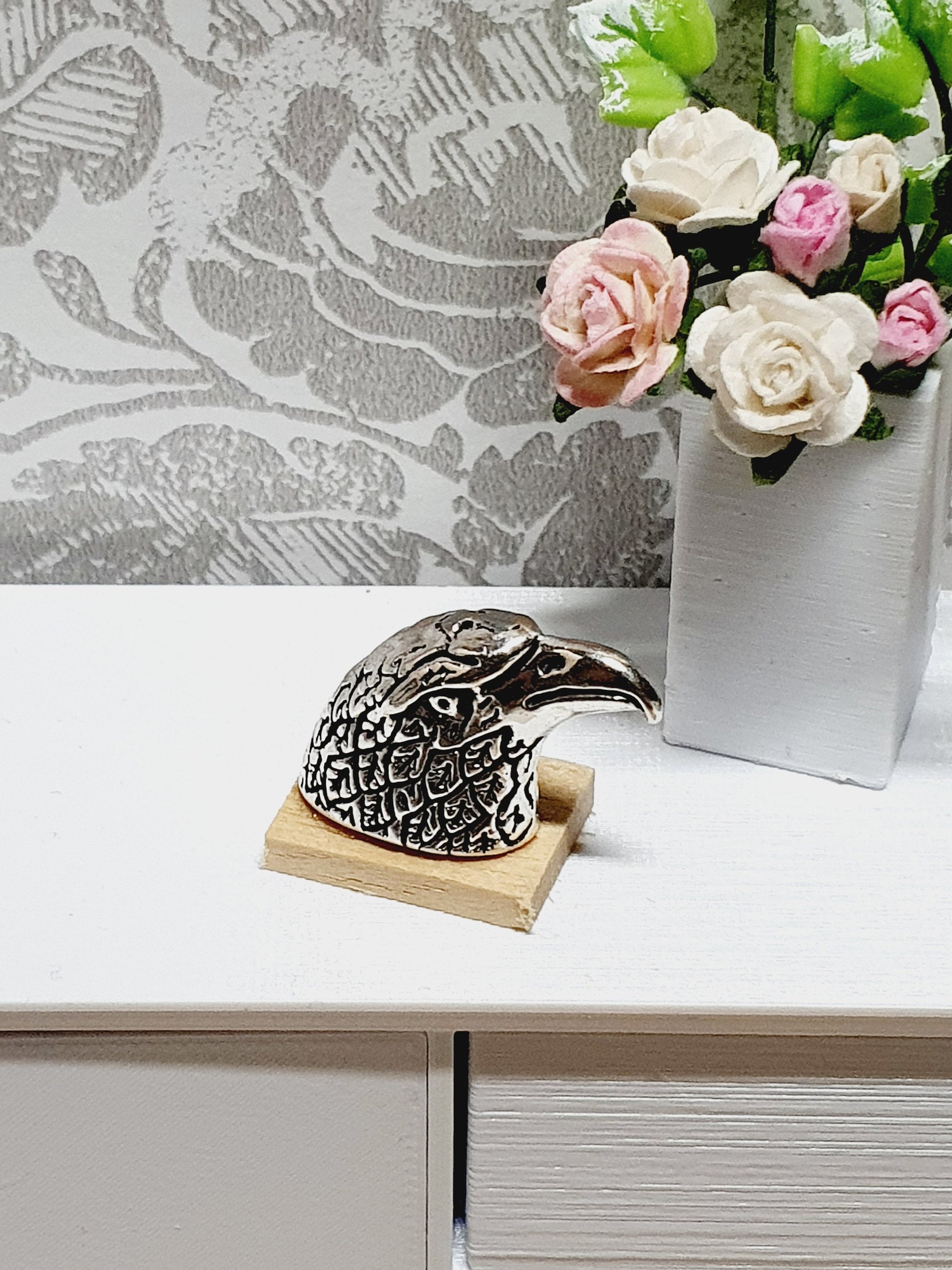 Dolls House Eagle Ornament | Miniature Eagle Head on Wooden Base | 1:12 Scale