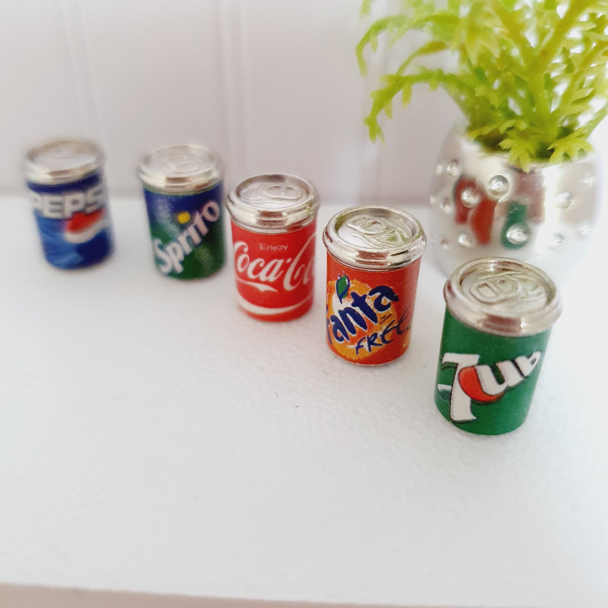 Dolls House Miniature Soda Cans, Set of 5, 12th scale, mini cans of drinks