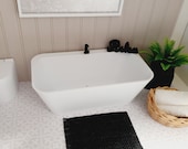 Dolls House Modern White Bath with black tap, 1...