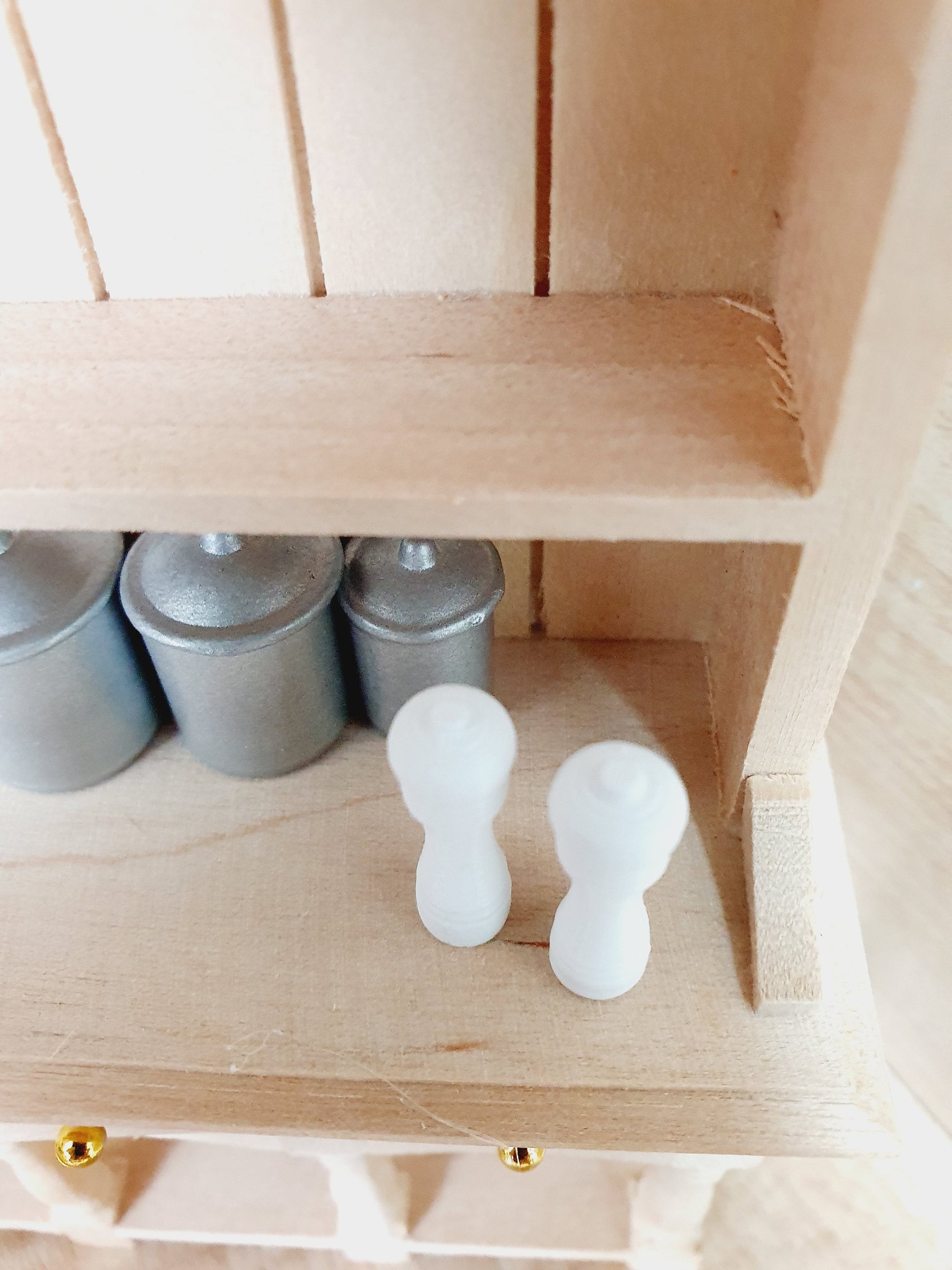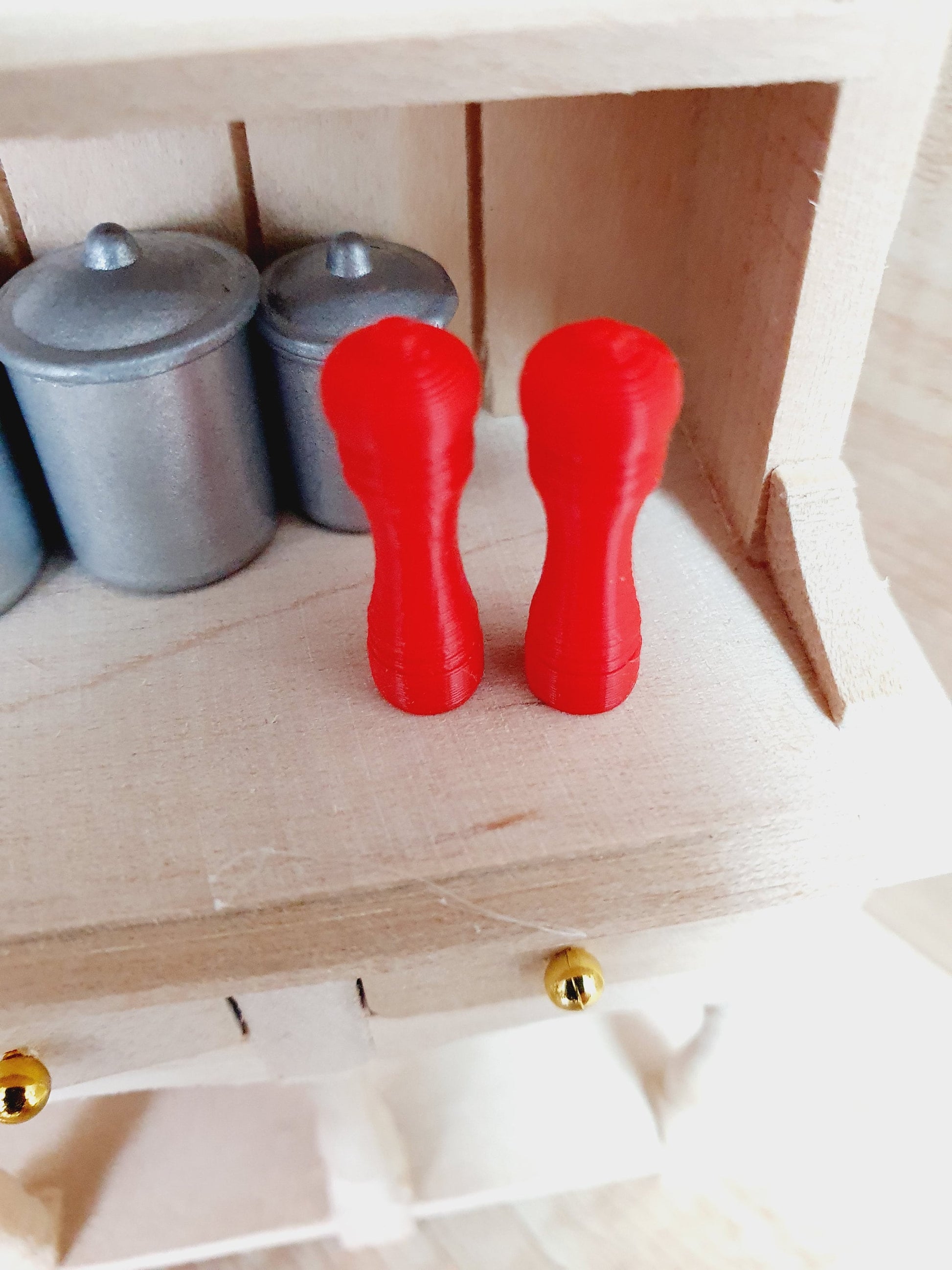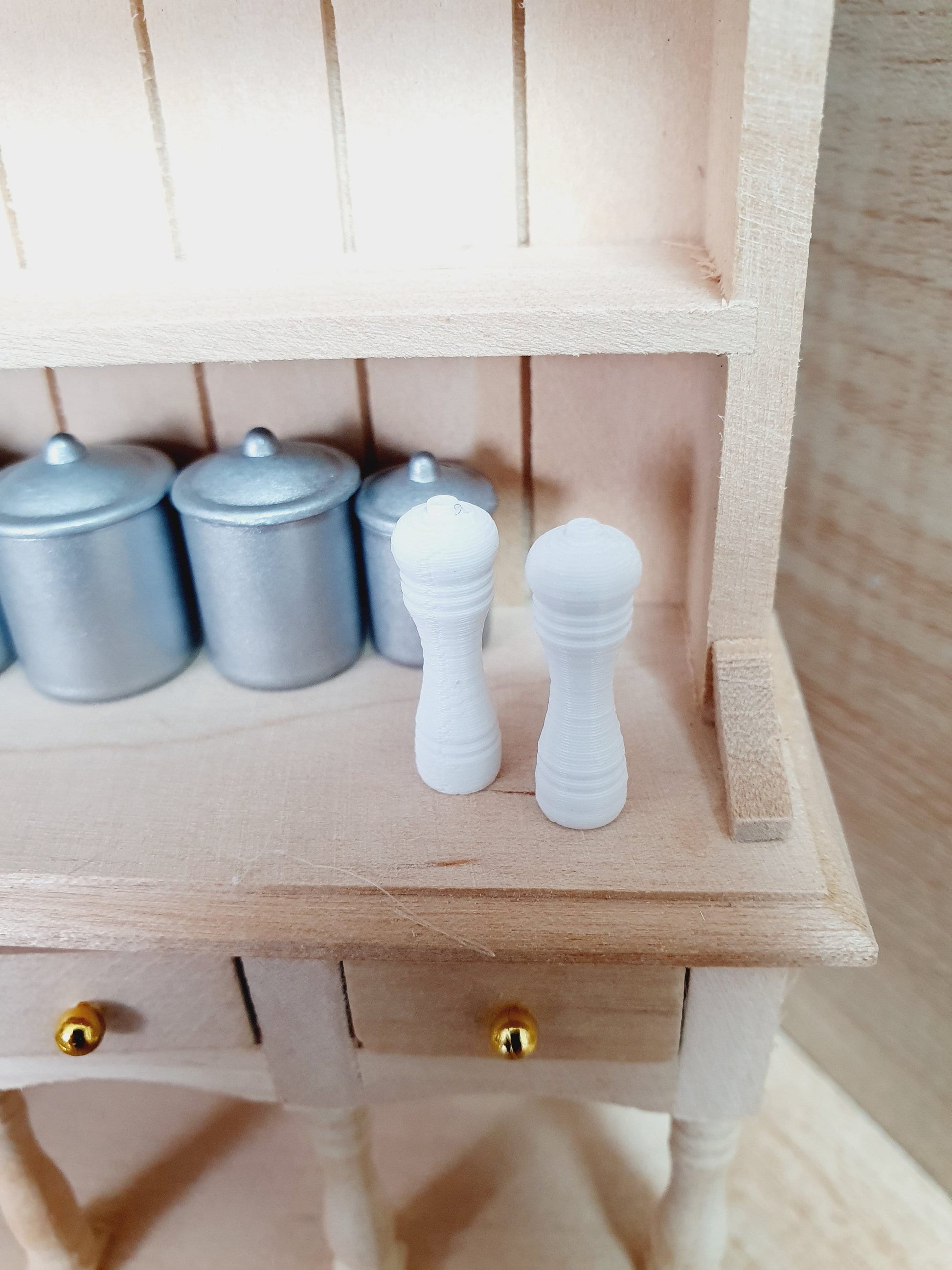 Dolls House Modern Salt and Pepper Mills, Choice of Colours 1:12th Scale, Miniature Salt And Pepper Pots