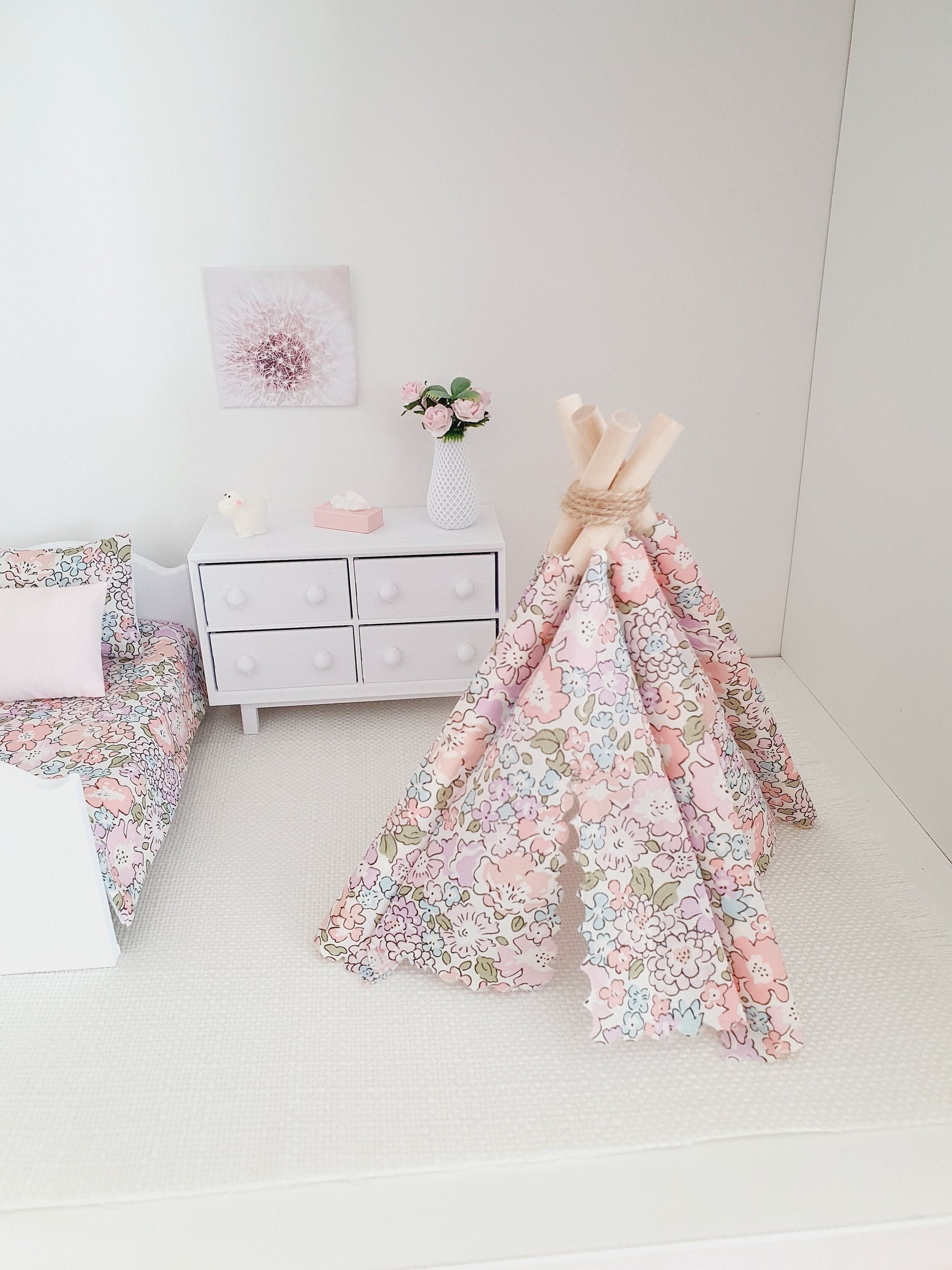 Dolls house Pretty Pink Liberty TeePee / Tent, Michelle Pink Fabric, 12th scale tent, miniature teepee, Tipi, Tent