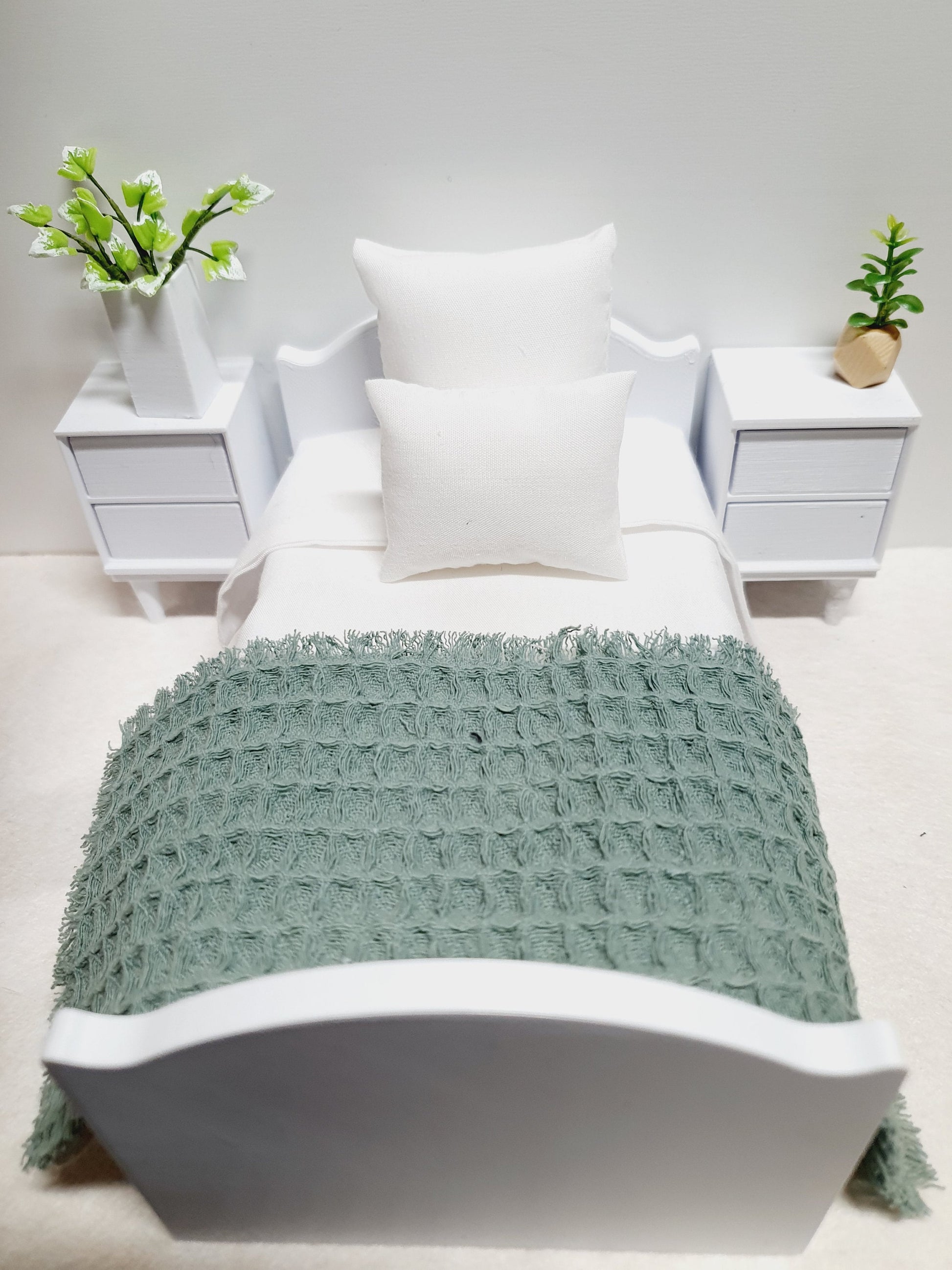 Dolls House Pretty Single Waffle Throw, choice of colours, Single, 12th scale, miniature