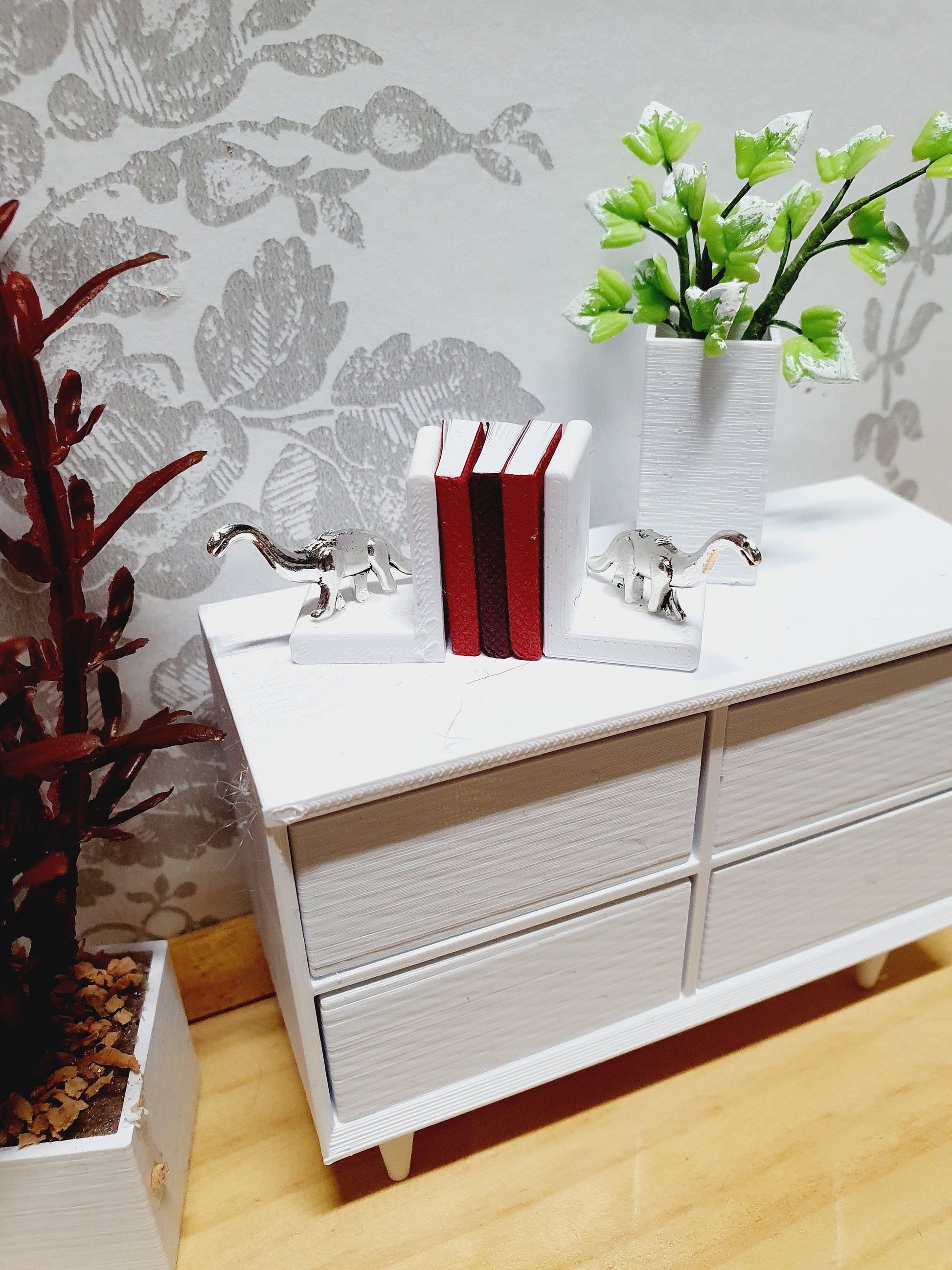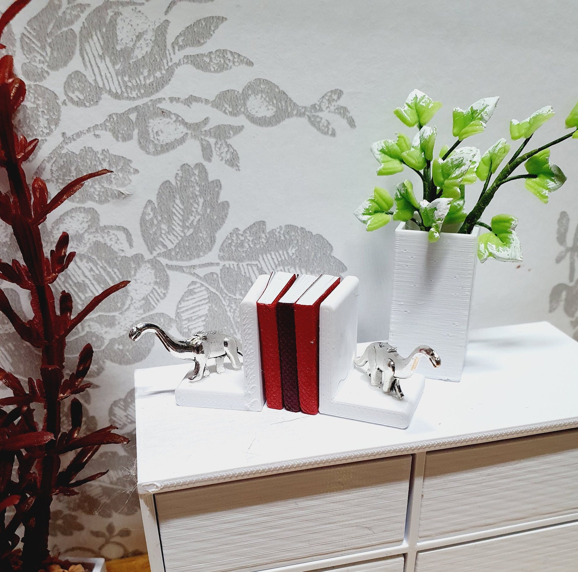 Dolls House Set of Bookends with Dinosaurs, Miniature Bookends, Books, 12th Scale
