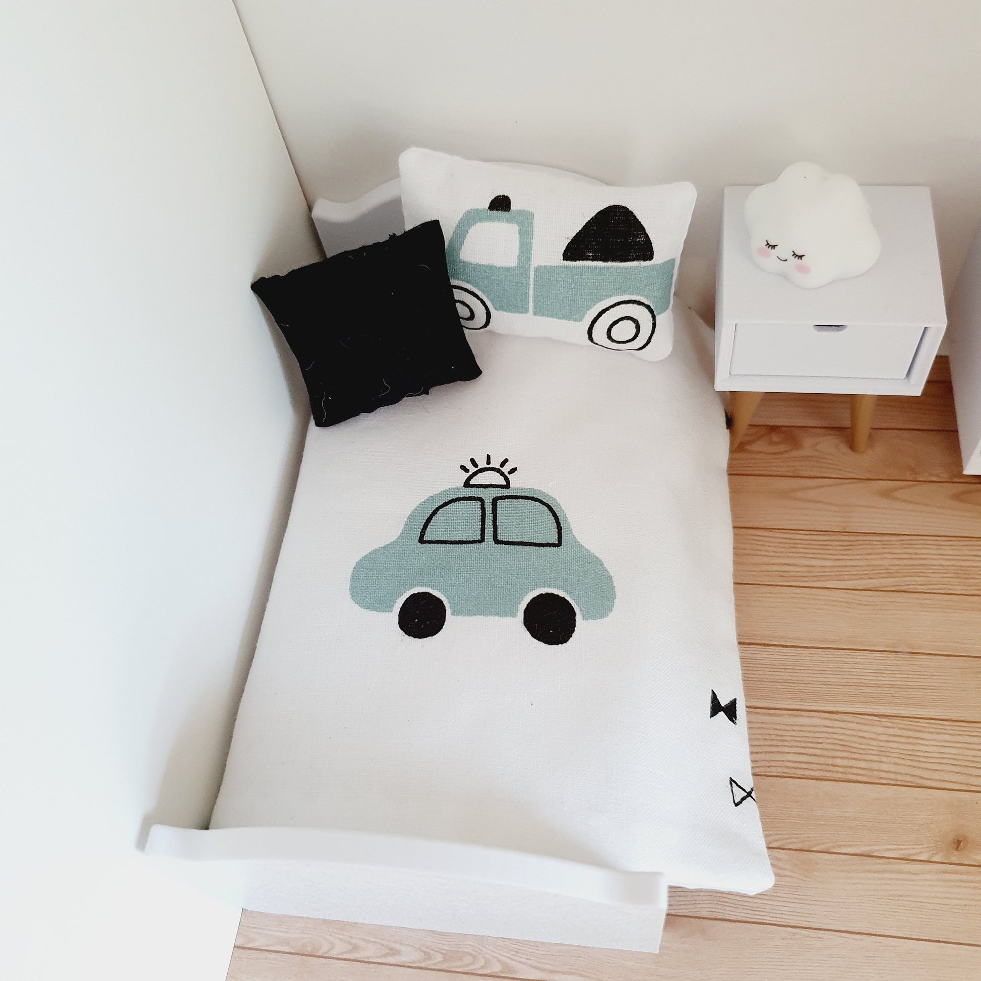 Dolls House Single Car Bedding Set – 3-Piece, 1:12 Scale, Miniature Bedding