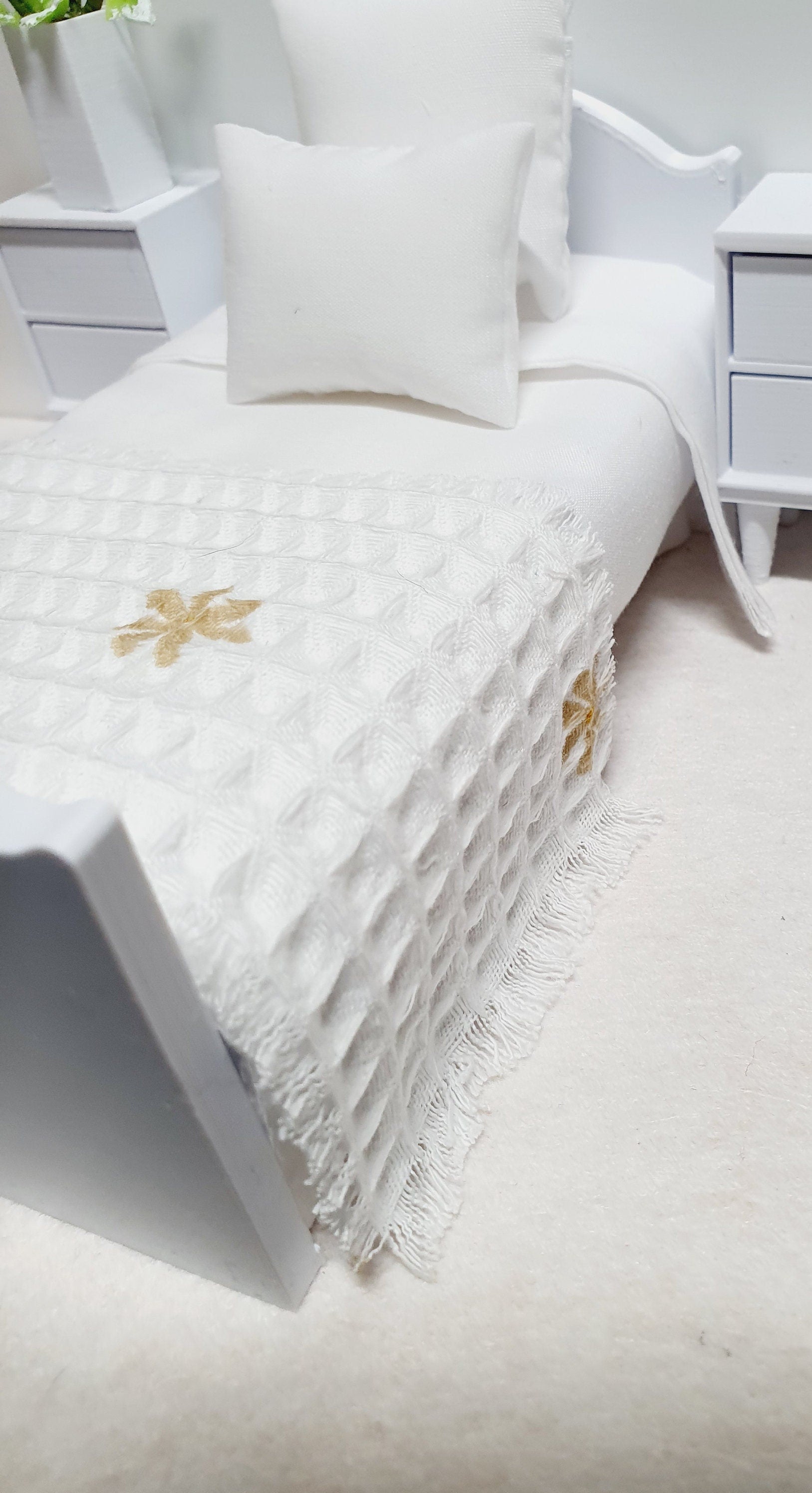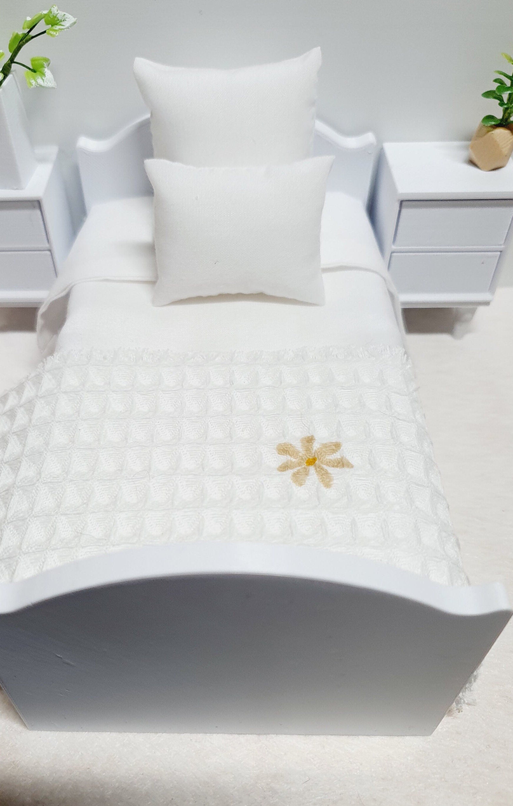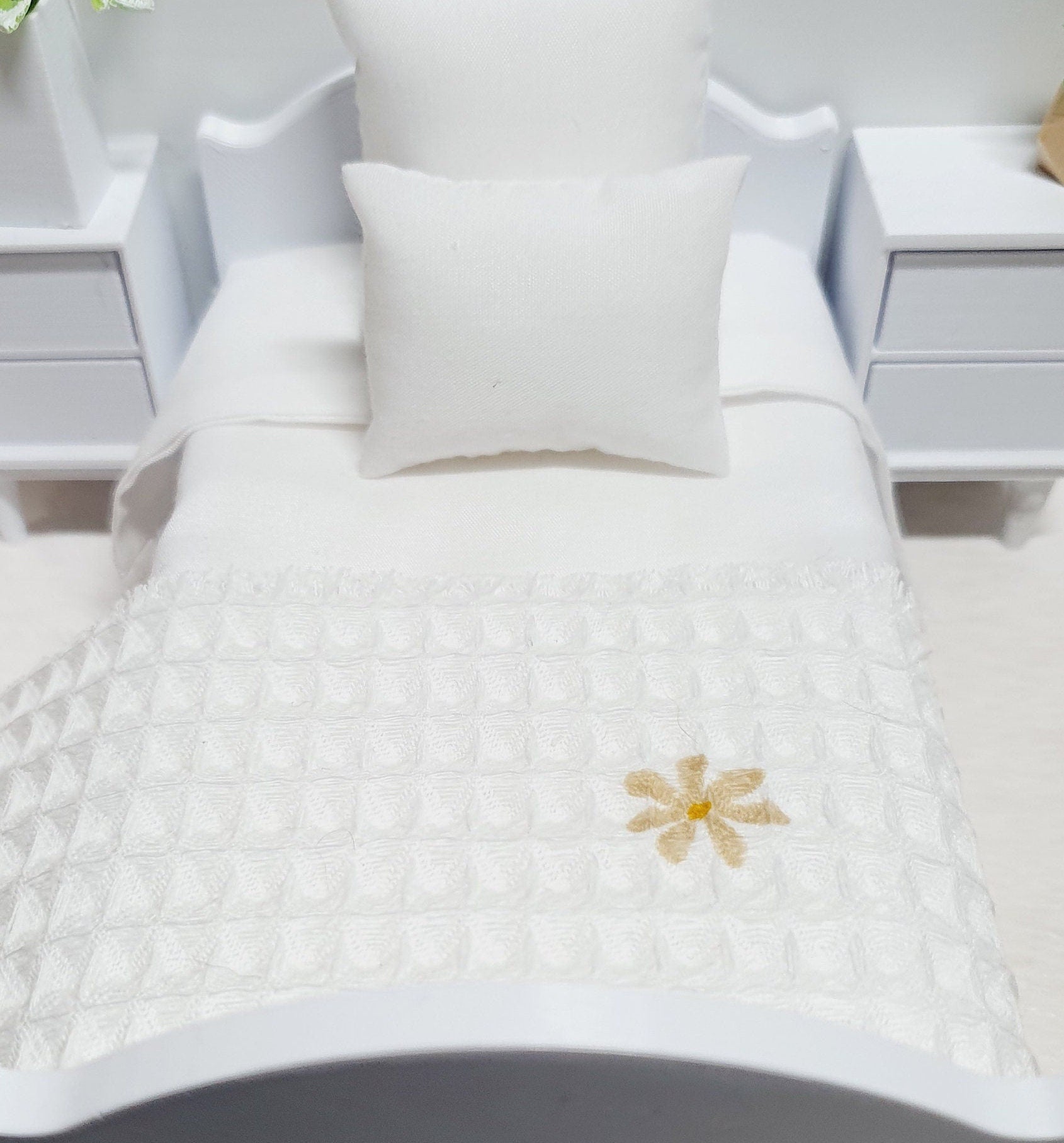 Dolls House Single Daisy Waffle Throw, choice of colours, Single, 12th scale, miniature