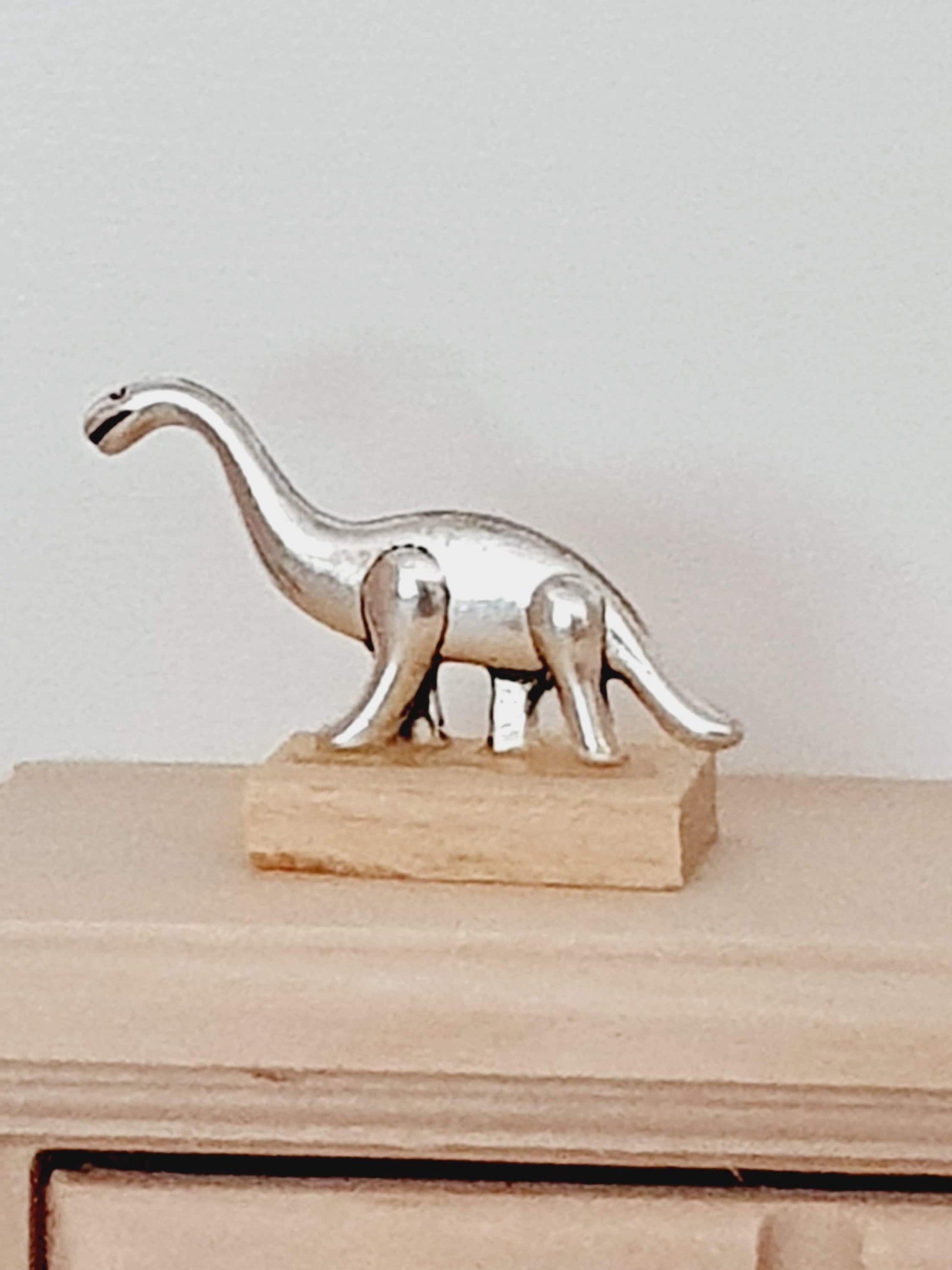 Dolls House Small Dinosaur Ornament on a wooden stand, 1:12th Scale, Miniature dino on a stand
