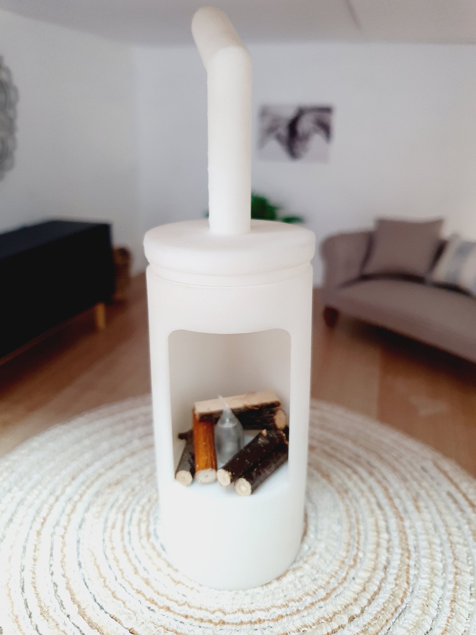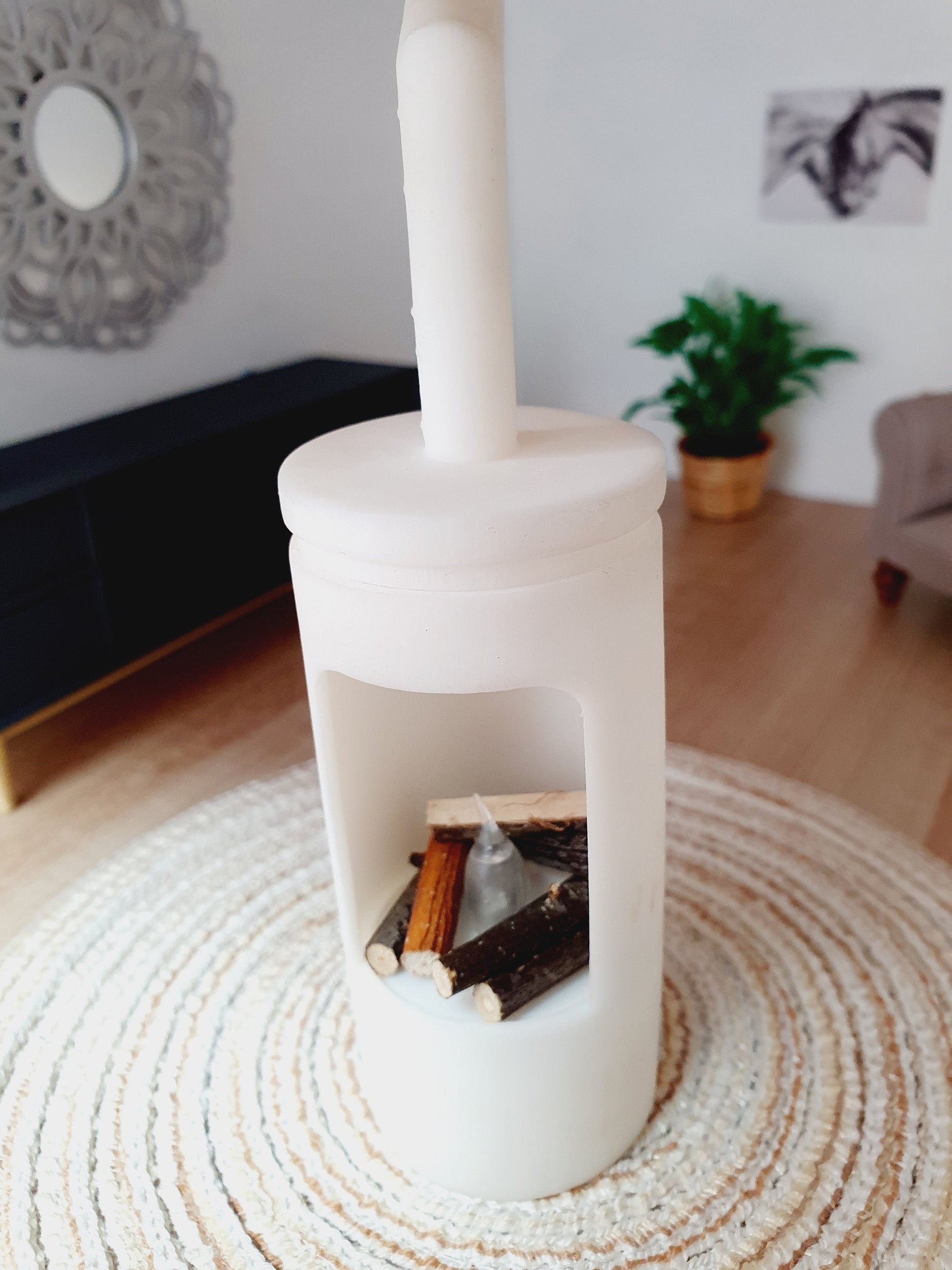 Dolls House White Modern Round Log Fire with Light Up Flame and Wood, 1:12th Scale, Miniature Fire (FIRE4)